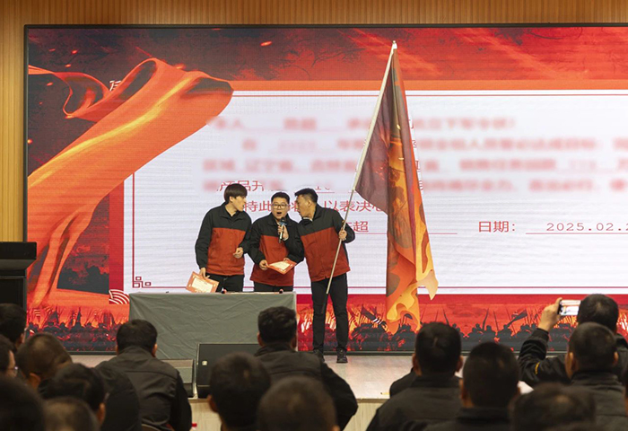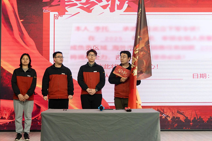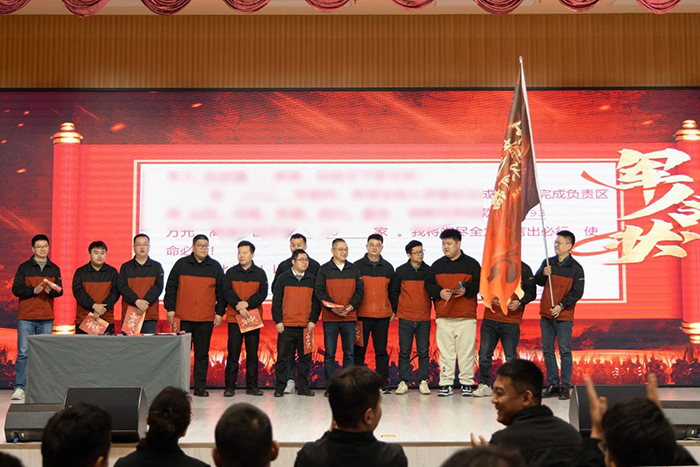 在热血沸腾的誓师环节,各区域销售团队代表依次登台,庄重地立下军令状。他们言辞坚定,掷地有声地承诺“将全力以赴,克服一切困难,坚决完成既定的销售目标”。团队成员信心满满的表示:“我们这支团队拥有坚韧不拔的意志和无往不胜的决心,在新的一年里,必将披荆斩棘,创造更加辉煌的业绩,为公司的发展贡献全部力量!”